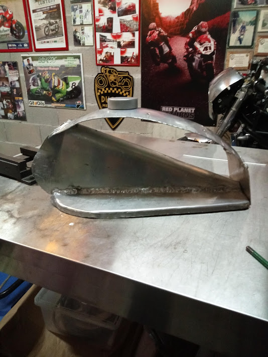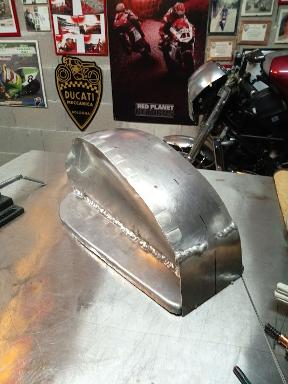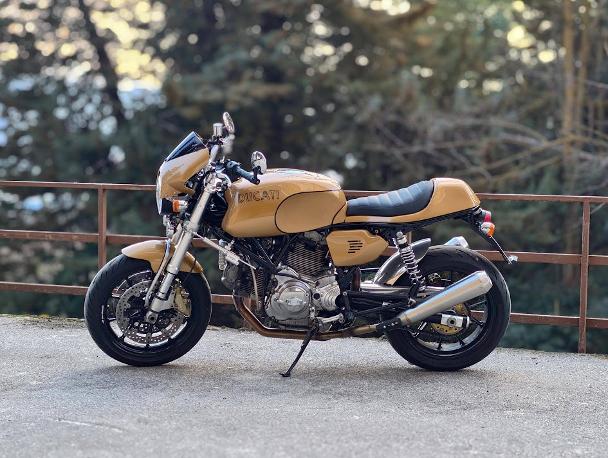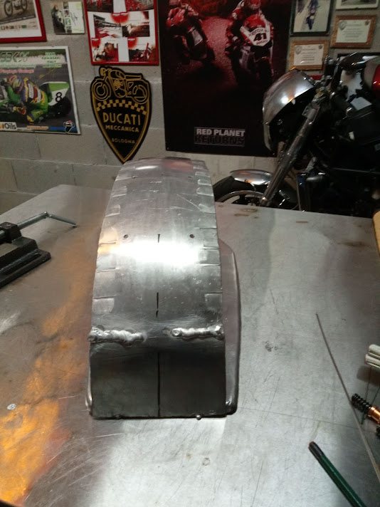 Ducati Gt con carter motore lucidati, parafango posteriore con paracatena e carter copripignone in alluminio fatto a mano e fianchetti laterali in acciaio inox tagliato al laser.