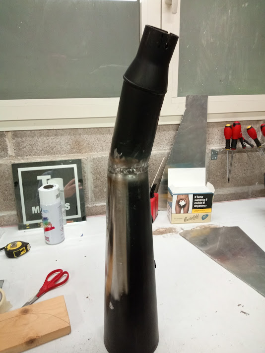 Cover scarico, quella a destra presentava un bozzo, eliminato e successivamente lucidate.